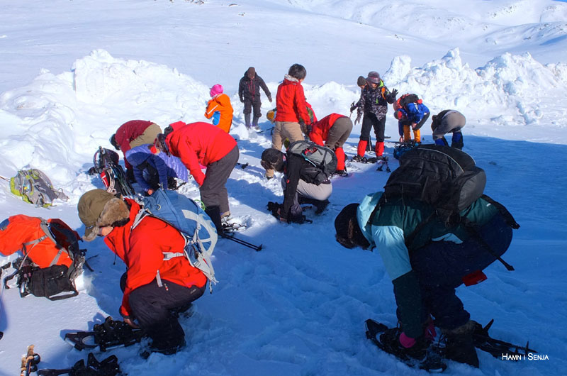 ca. 5-std. Ausflug mit einer anspruchsvollen Schneeschuhwanderung in die arktische Wildnis am Abend inkl. Ausrüstung, Snacks & Getränken