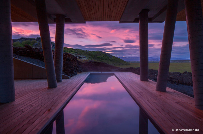 Puristisches Design erwartet Sie im Adventurehotel Ion. Der richtige Ort für ein „Once in the lifetime“ Erlebnis. Es liegt zwischen majestätischen Bergen und schroffen Lava. In der Sauna bringen Sie Ihren Körper auf Temperatur. Im Warmwasserpool lässt es sich perfekt „chillen“. Im Silfa Restaurant und der Northern Light Bar genießen Sie regionale Essenskultur.