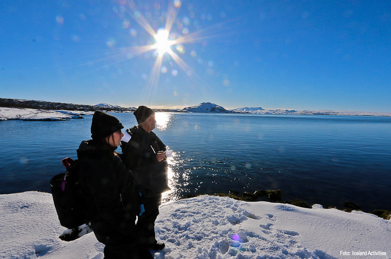 Den exakten Reiseverlauf stimmen wir als zuverlässiger Islandspezialist auf Ihre Flugzeiten ab. Auf dem Weg Richtung Nordwesten besuchen Sie den zauberhaften Wasserfall Hraunfossar. Sie lernen das Hexenmuseum im Fischerörtchen Hólmavík kennen. Ísafjörður, der größte Ort der Westfjorde wird Sie begrüßen. Basis Ihrer Unternehmungen ist die sympathische Landunterkunft Heydalur. Genießen Sie dort herrliche Bäder in natürlichen Thermalquellen. Lassen Sie sich von leckeren Speisen mit dem besten aus der isländischen Naturküche verwöhnen. Zusammen mit Ihrer Reiseleitung unternehmen Sie eine Schneeschuhtour. Sie lernen die besten Eisangel-Tipps kennen.