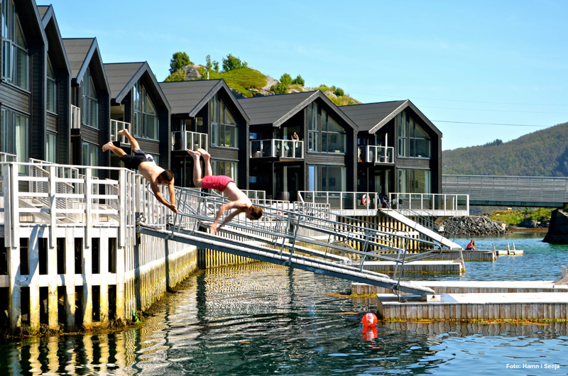 Zum Hotel gehört auch ein schönes Restaurant mit Terrasse für ein gutes Essen mit einer frischen Meeresbrise. Eine romantische Mittsommernachtsfahrt auf dem Fjord sollten Sie zwischen Mai und August nicht verpassen. Abenteuer mit dem Seekajak, dem Fahrrad oder zu Fuß bieten sich für Aktive in der herrlichen Landschaft an. Entdecken Sie Senjas weiße Sandstrände mit einer faszinierenden Vogelwelt. Mit etwas Glück bekommen Sie auch Wale vor der Küste zu Gesicht.