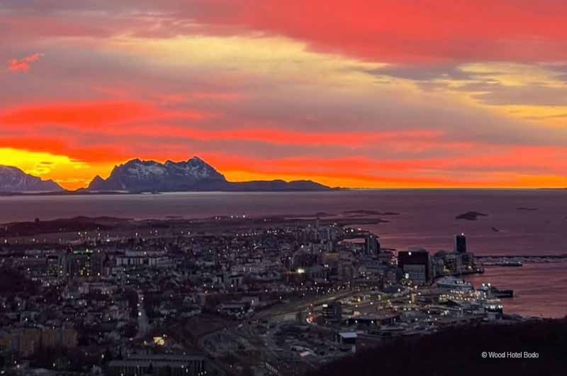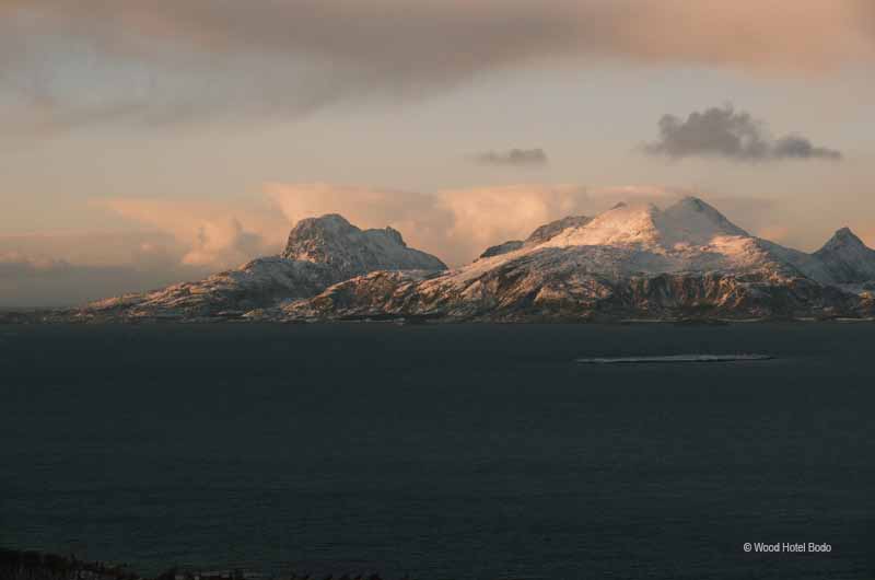 Von Oktober bis April zeigt sich Bodø von seiner magischsten Seite. Unter dem klaren Nachthimmel tanzen die Polarlichter, der mächtige Saltstraumen-Gezeitenstrom entfaltet sein winterliches Schauspiel, und stille Küstenwege laden zu unvergesslichen Spaziergängen ein. Das Wood Hotel erhebt sich majestätisch am Rand der Stadt – ein Ort, an dem arktische Wildnis auf urbanen Charme trifft. Aus Ihren Fenstern genießen Sie entweder das beeindruckende Bergpanorama oder den weiten Meerblick.