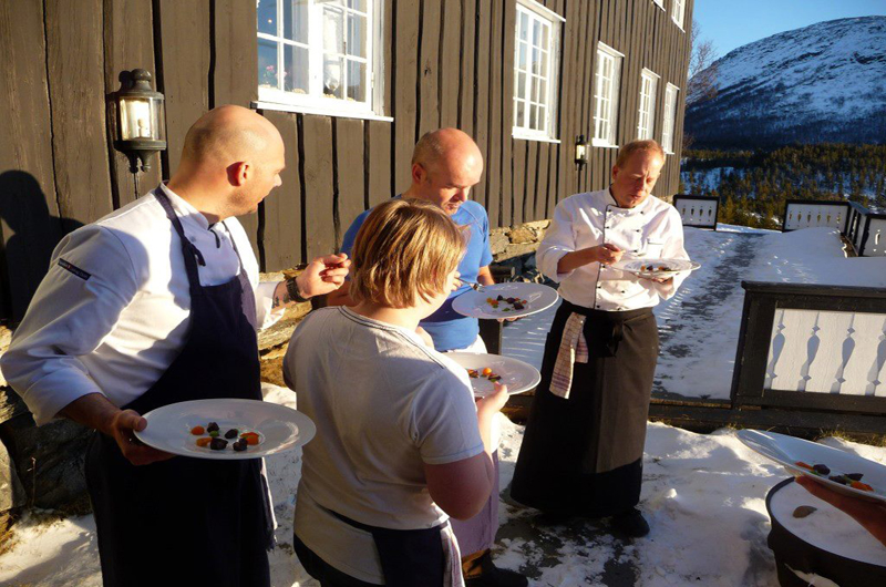 Manchmal sind es die kleinen Details die ein exzellentes Essenserlebnis ausmachen. Wenn beispielsweise die deutsche Gastgeberin Karola das leckere Drei-Gänge Menü ankündigt - oder der Chefkoch Andre stolz von seinen Rentieren berichtet, deren Fleisch er mit viel Liebe zubereitet. Der Gruß aus der Küche wird auf einer langen Holzschaufel gereicht und die Kräuterbutter auf einem Basaltstein serviert.