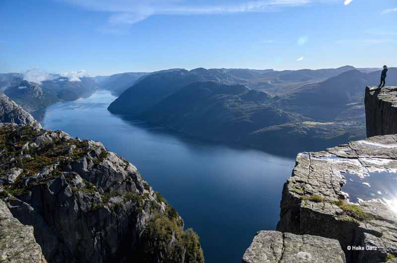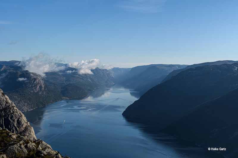 Der Lysefjord ist der südlichste der großen norwegischen Fjorde und liegt in der Nähe von Stavanger. Rund 40 Kilometer lang wird er von beeindruckenden, teils über 1.000 Meter hohen Bergen eingerahmt. Der Fjord ist nicht nur lang und schmal, sondern an einigen Stellen ebenso tief wie die Berge hoch sind. Nahe seiner Mündung misst er nur 13 Meter Tiefe – doch am berühmten Preikestolen fällt der Grund auf über 400 Meter ab.