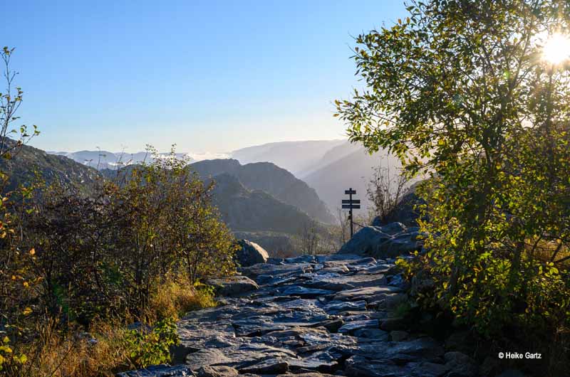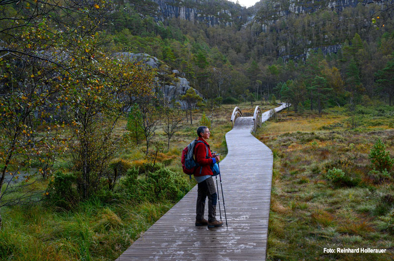 Um die Spitzen von Preikestolen oder Kjerag zu erreichen, sind teils anspruchsvolle, aber lohnende Wanderungen nötig. Die Wege führen über Felsen, Wald und Plateaus – und belohnen mit grandiosen Panoramen über den Fjord.