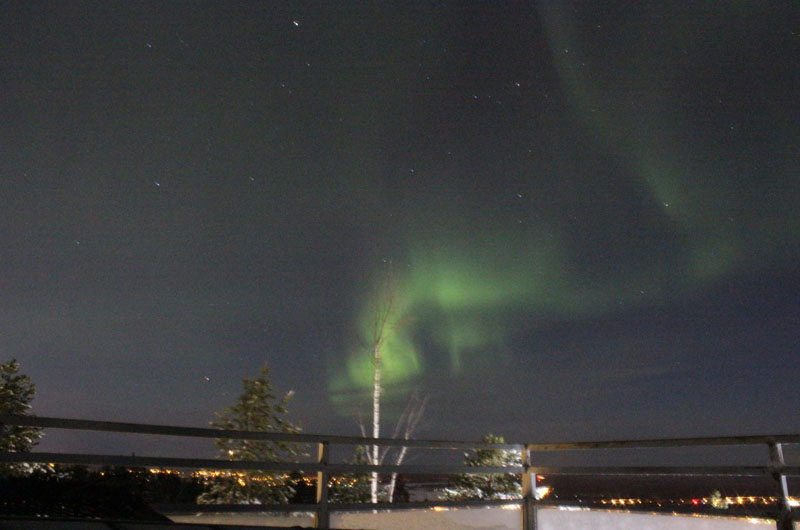 Am nächsten Morgen ging es zeitig mit unterschiedlichen Workshops weiter. Am späten Nachmittag fuhren wir dann nach Rovaniemi - dem Tor zu Lappland. Nach dem kurzen Besuch des Schneemobilmuseums ging es dann auch schon weiter zu einem Baumhaushotel. Nach einer kurzen Führung fuhren wir weiter zum Lapland Hotel Sky Ounasvaara, unserem letzten Hotel für diese Inforeise. Das Hotel liegt etwas außerhalb auf einem kleinen Berg und man hat von dort aus einen fantastischen Blick auf Rovaniemi. Nach dem Abendessen gingen wir alle gemeinsam auf die hoteleigene große Terrasse, um Rovaniemi bei Nacht zu bestaunen. Wir haben Rovaniemi nicht nur bei Nacht, sondern auch unter dem Schein der Nordlichter betrachten können. Das Beobachten der Nordlichter war mein persönliches Highlight dieser Reise. Bis spät in die Nacht blieben wir draußen im kalten um das Naturspektakel hautnah miterleben zu können.