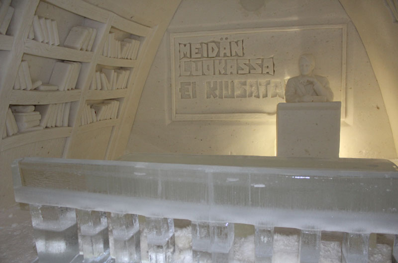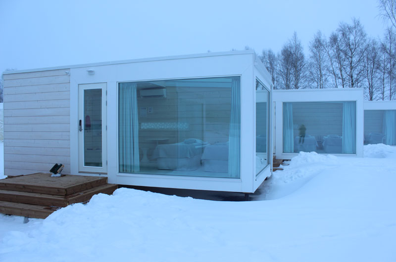 Am 13.03.2017 musste ich mich von allen im Saija verabschieden, da es für mich nun zurück nach Kemi ging. Denn da begann die eigentliche Inforeise. Unsere erste Station war eines unserer Partnerhotels, das Lumillina Snowcastle. Nach einer ausführlichen Führung durch das Snowcastle wurde uns im Eisrestaurant das Abendessen serviert. Danach durften wir unsere Zimmer für diese Nacht beziehen: Die Glasvillen beim Snowcastle. Die Glasvillen haben ein Dach aus Glas, damit man vom Bett aus das Nordlicht beobachten kann. Leider hatten wir in dieser Nacht einen kleinen Schneesturm, sodass wir kein Glück mit den Nordlichtern hatten.