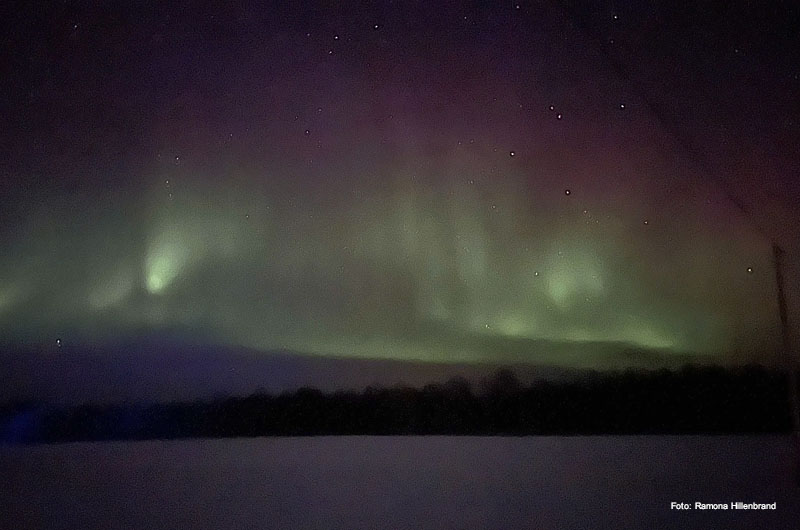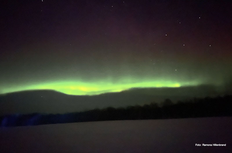 Am 26.03.22 ging es von Frankfurt aus morgens mit der Lufthansa nach Ivalo. Dort angekommen haben wir unseren Mietwagen, einen Ford Focus, entgegengenommen und sind zu unserer ersten Destination, dem Hotel Ivalo Oy gefahren. Nach einem entspannten Abendessen in einem Pub waren wir gerade wieder im Hotel angekommen. Ein kurzer Blick in den Himmel und tada – da waren sie. Die Nordlichter. Ein grandioses Naturschauspiel und das direkt am ersten Abend! Nach einer etwas komplizierteren, privaten Nordlichtjagd, welche allerdings alles andere als erfolgreich war, fielen wir müde ins Bett.