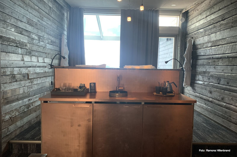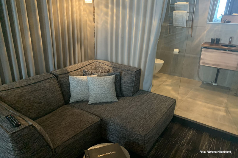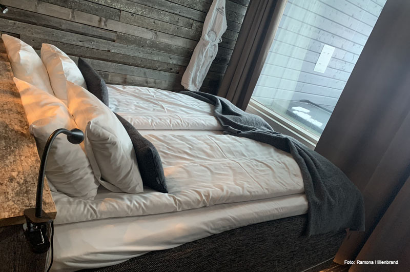 Am darauffolgenden Tag haben wir morgens das Weihnachtsmanndorf besucht und noch eine kleine Sightseeingtour durch Rovaniemi gemacht. Anschließend fuhren wir nach Iso Syöte zu unserem Spahotel Iso Syöte. Ich war schon so gespannt auf diese Unterkunft. Im Dezember 2018, kurz vor Weihnachten, wurde das Haupthaus mit allen Zimmern, Suiten, Restaurant und dem Arctic Spa bei einem verheerenden Brand zerstört. Seither hatte ich leider noch keine Gelegenheit das „neue“ Hotel zu besuchen. Daher freute es mich jetzt umso mehr, dass ich endlich die Gelegenheit dazu bekam. Und ich muss sagen, ganz getreu dem Motto „Rising from the ashes“ – wow. Ich kann mich noch gut an das alte Hotel erinnern, bevor der Brand es zerstört hat – kein Vergleich zu dem heutigen Hotel. Ein tolles Restaurant mit grandiosem Ausblick ins Tal und auf die Skipisten. Ein für Nordeuropa grandioses Arctic Spa mit Swimmingpool und verschiedenen Saunen. Die hochwertigen Zimmer – egal ob das die Rentierzimmer, die Star Superior Zimmer oder die Aurora Suiten sind. In Letzterem waren wir auch untergebracht. Die zweistöckigen Aurora Suiten sind mit einer privaten Sauna und einem privaten Whirlpool auf der glasüberdachten Terrasse ausgestattet. Von dort aus hatten wir einen grandiosen Blick über das verschneite Tal. Unten befindet sich ein kleines Sofa, ein Badezimmer und die Sauna. Auf der zweiten Etage befindet sich ein Doppelbett, eine Sofaecke, ein größeres Badezimmer und der private Whirlpool. Abgerundet wurde dieser Aufenthalt mit einer entspannten Huskytour durch die verschneiten Wälder. Vielen Dank an dieser Stelle an Gerralda für den Rundgang durch das neue Hotel! Wir kommen wieder!