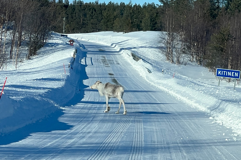 Was mich in Lappland immer wieder fasziniert, ist die Tatsache, dass man außerhalb der größeren Ortschaften in mehreren hunderten Kilometern nur vereinzelt Autos begegnet. Diese Tatsache macht es super entspannt, dort oben Auto zu fahren. Aber Achtung: Die meisten Rentiere wissen ganz genau, dass sie Vorfahrt haben. Die springen mal gerne einfach so vom Wegesrand auf die Straße – daher die Umgebung immer gut beobachten!
