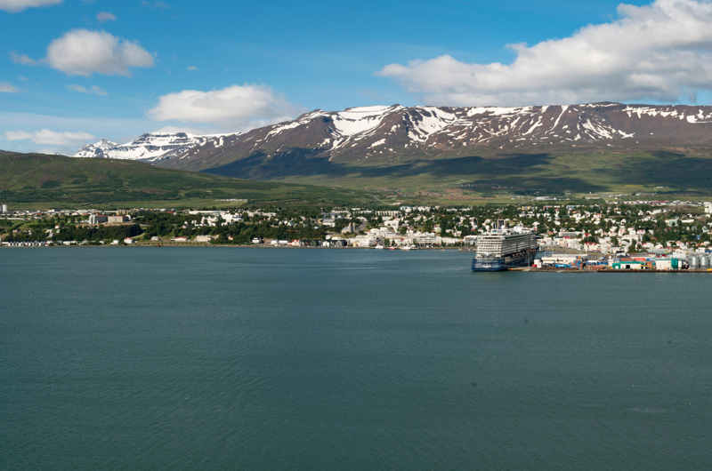 Abends erreiche ich die Perle des Nordens, wie Akureyri auch liebevoll genannt wird. Als ich anderntags die Stadt erkunden möchte habe ich etwas Pech. Ein großes Kreuzfahrschiff hatte angelegt und die Stadt gut gefüllt. Zudem gab es in der sehenswerten Kirche eine Beerdigung. Also nur ein kurzer Besuch des Zentrums und ein Eis mit Karamell-Erdnussgeschmack geschleckt.
