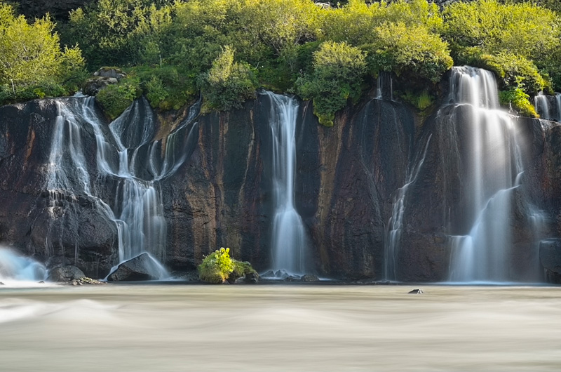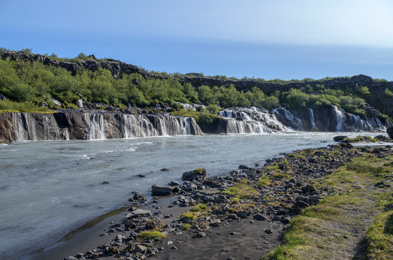 Meine Reisetage sind inzwischen gezählt. Es wird Zeit Richtung Reyjkavík aufzubrechen. Bevor ich mich aber in die quirlige Hauptstadt aufmache möchte ich noch zum Hraunfossar. Ich verlasse die Halbinsel und fahre zurück zur Ringstraße, der ich ein wenig Richtung Norden folge, bis ich über die 50 und 518 Richtung Húsafell den Hraunfossar erreiche. Die frühen Morgenstunden bieten sich für den nicht wirklich spektakulären Wasserfall an. Er ist aufgrund der Gesteinsformationen, seiner Farbtönungen und Breite ein schönes Naturerlebnis. Ein Lava-Wasserfall der eine über einen Kilometer lange Kaskade bildet. Einmal mehr bedauere ich, nicht mit einem Allrad unterwegs zu sein. Anderntags kann ich nämlich nicht vom Hraunfossar über die 550 zum Þingvellir National Park fahren, um direkt zum Goldenen Kreis zu gelangen. Diese Piste ist entgegen meiner Autokarteninformation leider Allradfahrzeugen vorbehalten. Mein Weg führt mich daher zurück zur Ringstraße und dann nach Reyjkavík.