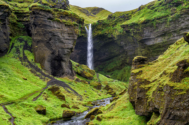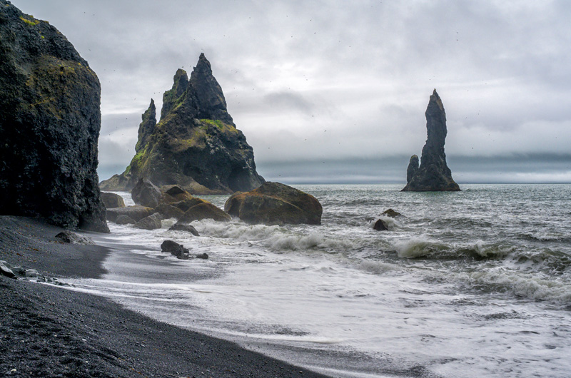 An der Südküste reihen sich die Highlights Islands wie Perlen an einer Kette: Seljalandsfoss ist immer gut für einen Blick hinter die Kulissen, denn man kann hinter den Wasserfall gehen. Den benachbarten Gljúfurárfoss nehme ich gleich mit. Er fällt hinter einer Felswand in einen Kessel der nur einen Spalt weit geöffnet ist. Weiter geht's zum Skógafoss - mit einer der schönsten Wasserfälle. Achtung: Am oberen Aussichtspunkt zeigt sich der Wasserfall nicht so fotogen. Nur lohnenswert wenn man von dort weiter den Fernwanderweg zu weiteren Wasserfällen geht. Alternativ lohnt der Kvernufoss. Der etwas versteckt liegende Weg dorthin startet nordöstlich vom Freilichtmuseum. Ich entscheide mich für den 30 m hohen wunderschönen Kvernufoss, der von Touristenmassen verschont ist. Kulturinteressierte besichtigen in Skóga das Freilichtmuseum. Nicht weit und der nächste sehenswerte Stopp, Sólheimajökull, taucht auf. Die Gletscherzunge ist ein Ausläufer des Mýrdalsjökull. Ein kurzer Spaziergang und man steht am Rand des abschmelzenden Gletschers. Das Eis ist mit schwarzen Schichten durchzogen, die von den Ascheregen früherer Vulkanausbrüche stammen. Auf der Fahrt zu den nächsten Sehenswürdigkeiten Kap Dyrhólaey und die schwarzen Strände bei Reynisfajra kann man einen Halt für ein Flugzeugwrack einlegen. Ich kann davon nur abraten: Der Fußmarsch durch den Sand ist zeitraubend, das Wrack selbst voller Aufkleber und Sprüche. Bei Fotografen bis vor wenigen Jahren noch als Geheimtipp für „Lost Places Fotografie“ beliebt, hat es seinen Charme für meinen Geschmack verloren. Im Sommer gibt es, man sollte es nicht glauben, tatsächlich einen teuren Shuttle vom Parkplatz zum Strand und zurück.