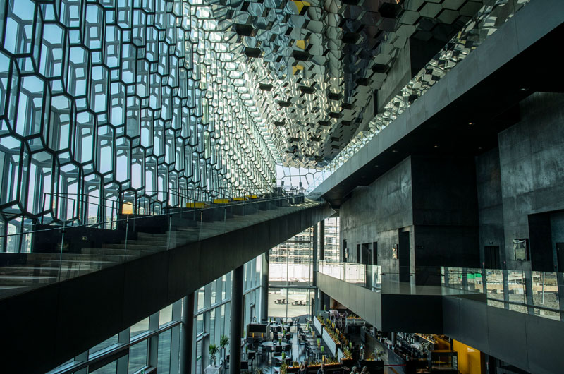 In der Hauptstadt Islands ist am Wochenende „Partytime“. Im imposanten Harpa, dem Kongresszentrum der Stadt, geht man fein gekleidet in das Konzert. Mein Bummel führt mich durch die Innenstadt. Die Fußgängerzone anzusehen lohnt sich. Wer ein wenig "Kleingeld" hat, kann hier geschmackvoll in den exklusiven Läden einkaufen. Für Touristen gibt es natürlich auch die klassischen Souvenirläden. Auffällig sind die durchweg gut gefüllten Restaurants und Bars in der gesamten Innenstadt. Manch eine Fassade ist so flippig wie einige Isländer gekleidet sind. Es gibt ein Punk-Museum und viele weitere Kuriositäten. Die bunten kleinen Häuschen stehen im Kontrast zu den modernen Glasbauten. Gegen 23 Uhr finde ich mich am Sun Voyager, einer Skulptur an der Meerespromenade, ein. Der Trubel hält sich in Grenzen und wer etwas wartet, schafft es auch auf ein Bild ohne unliebsame Nachbarn. Eine spektakuläre Nachtaufnahme vom gläsernen Harpa gibt es indes nicht. Midsommer ist gerade vorbei und es bleibt hell. Egal. Ins Harpa sollte man auf alle Fälle gehen. Die Architektur ist auch von Innen imposant. Empfehlenswert ist der Besuch vom Perlan. Im Perlan, die „Perle“ befindet sich seit 2017 das Museum der Naturwunder Islands. Üppige Vegetation im Wintergarten, eine computergesteuerte Fontäne, die an einen Geysir erinnert und alle paar Minuten einen 15m hohen Wasserstrahl ausspuckt und unter der Kuppel ein Restaurant mit 360°-Panoramablick. Zu den Highlights von Perlan gehören die Ausstellung „Gletscher und Eishöhle“ mit der begehbaren Eishöhle und das Planetarium. Und wer im Sommer Nordlichter sehen möchte: Die Multimediashow über das Polarlicht in Top-Qualität macht es möglich. Sensationell gut gemacht.
