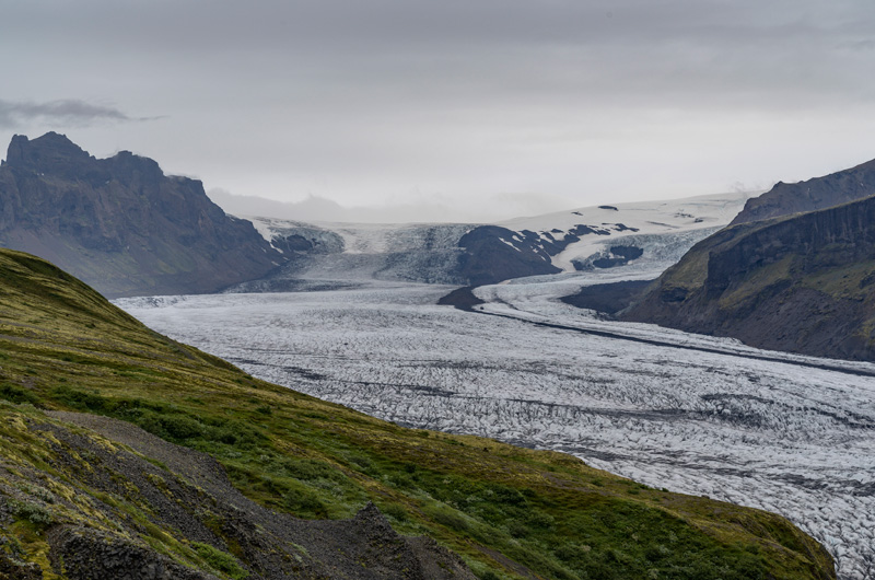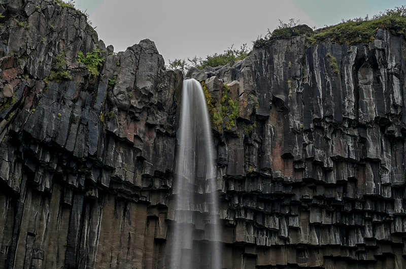 Nationalpark Skaftafell – das nächste Highlight steht auf meinem Wanderprogramm. Das Besucherzentrum mit Cafeteria und Souvenirshop hauen einem nicht gerade vom Hocker und der dort gezeigte Film ist in die Jahre gekommen, aber der Park selbst ist klasse. Wie Orgelpfeifen angeordnete Basaltsäulen bilden die Kulissen für den Svartifoss - „schwarzer Wasserfall“ – den man gut in seine kurzweilige Tour hoch zum Gletschertor einbauen kann.