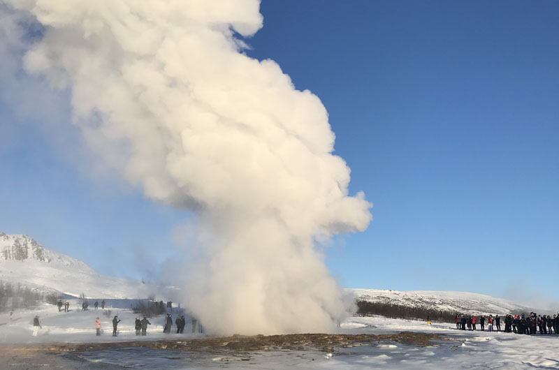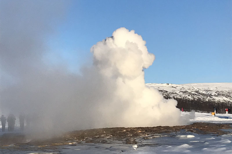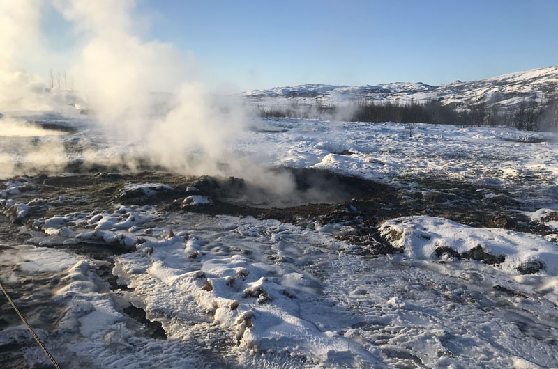 Ich habe den darauffolgenden freien Tag genutzt um Island besser kennen zu lernen. Mein erster Stopp war unser Partnerhotel Feuer & Eis in Hveragerdi. Mein persönliches Lieblingshotel auf der Insel. Die Zimmer sind einfach aber sehr gemütlich eingerichtet. Die Hot Tubs und der beheizte Außenpool laden nach einem anstrengenden Tag zum Entspannen ein. Nachdem mir Beata die Unterkunft gezeigt hat, ging es für mich mit dem Mietwagen weiter zum Strokkur.