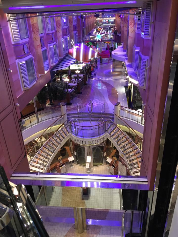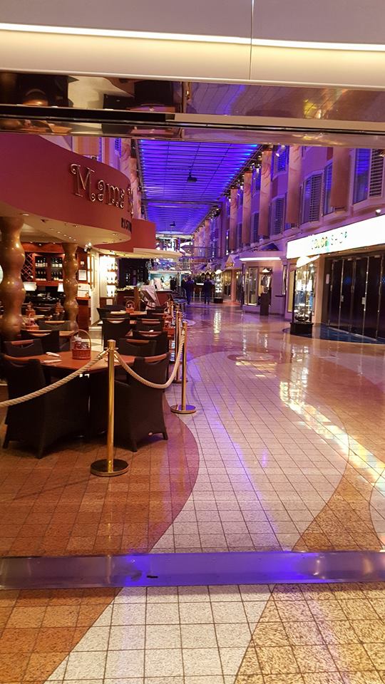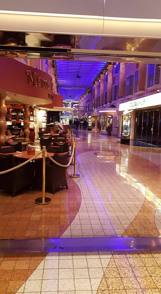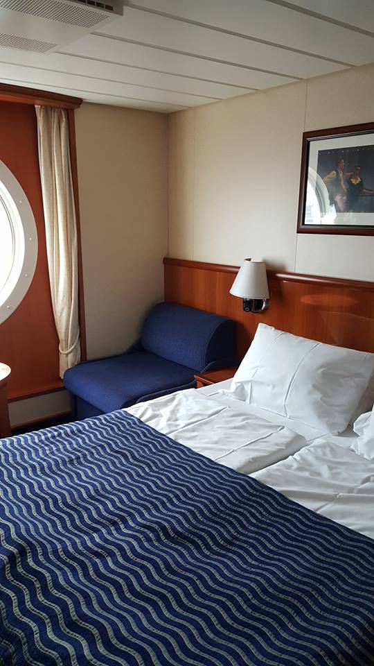 Meine Kabine mit Außenfenster war ein Highlight – das große Fenster bot wunderbare Ausblicke auf die See. Nachdem ich meine Sachen verstaut hatte, machte ich mich daran, das Schiff zu erkunden. Die Geschäfte, kleinen Lokale und gemütlichen Pubs schafften ein echtes Kreuzfahrt-Feeling.