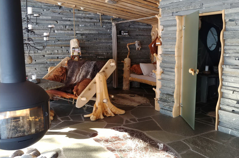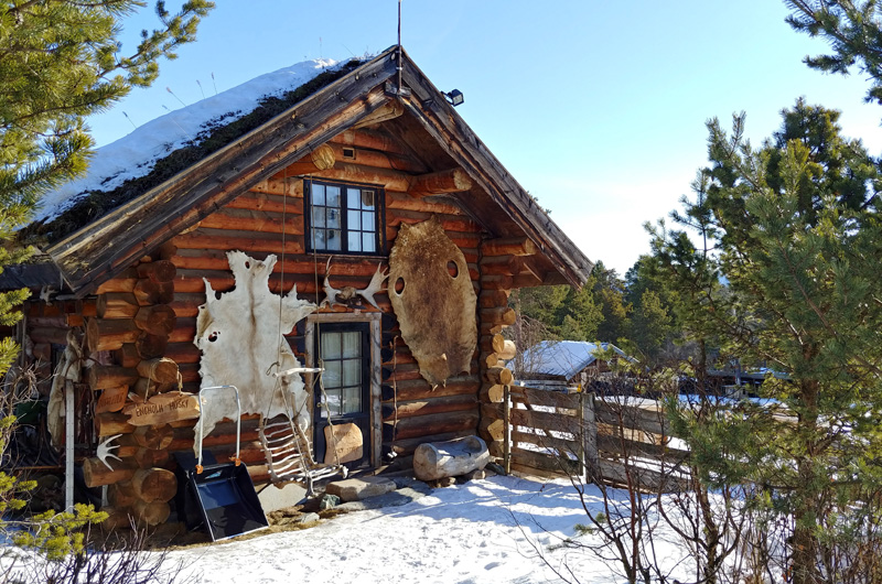 Nach einer kleinen Einkaufstour am nächsten Tag verabschiedete ich Claudia und Sarah am Flughafen und setzte meine Fahrt zur Engholms Huskyfarm fort. Die lange Strecke bis an die Norwegisch-Finnische Grenze habe ich etwas unterschätzt. Die 8-stündige Fahrt über arktisches Fjell war aber landschaftlich sehr beeindruckend, besonders weil mich das Wetter mit schönstem Sonnenschein verwöhnte. Bei Sven Engholm kam ich leider schon bei Dunkelheit an. Dass war aber besonders schön, denn die Designloge wurde stilvoll mit Fackeln beleuchtet. Auf der Engholm Husky Farm war ich das letzte Mal vor über 10 Jahren. Die Erinnerungen waren schon etwas verblasst. Den Namen „Designlodge“ hat aber der Ort wahrlich verdient. Über die Jahre hat der Gründer, Inhaber und Mucher-Ikone Sven Engholm die Lodge zu einem einzigartigen Ort mit viel samischer Kunst kreiert. Mein Resümee: Alles Top und jederzeit für Husky-Liebhaber mit höchsten Ansprüchen an originellem Wohnkomfort zu empfehlen.