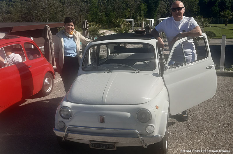 Die Erkundung Roms war nur der Anfang der Incentive Reise. Die Gäste wagten sich auch außerhalb der Stadtgrenzen, um die atemberaubende Landschaft der Albaner Berge zu entdecken. Eine Vespa-Tour entlang malerischer Dörfer wie Nemi und Grottaferratta bot nicht nur ein Gefühl von Freiheit, sondern auch spektakuläre Ausblicke auf die umliegende Natur. Der Höhepunkt war zweifellos die Fahrt mit historischen Fiat 500 Oldtimern nach Castel Gandolfo, dem Sommersitz des Papstes. Vor der Kulisse des tiefblauen Albaner Sees genossen die Gäste Pasta und Tiramisu, während sie sich von der