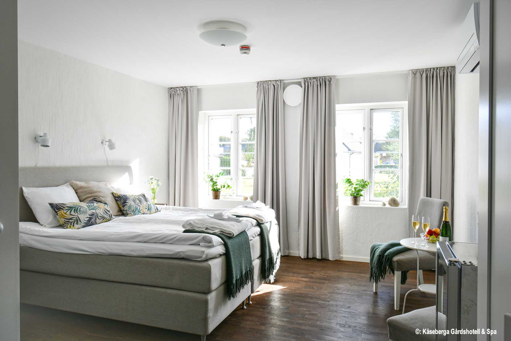 Östlich von Ystad, ganz in der Nähe der mystischen "Ales stenar" und dem besten Strand Schwedens, befindet sich das kleine Landhotel Kåseberga. Das in 2018 neu gebaute Kleinod mit dem gemütlichen Innenhof und dem charmanten Spa vermittelt heimeliges Ambiente in ruhiger Atmosphäre. Ein helles und modernes Design erwartet Sie dort. Alle 17 Zimmer sind mit Dusche/WC, TV und kostenfreiem Internetzugang ausgestattet. Es gibt etwas großzügiger geschnittene Doppelzimmer im Erdgeschoss und kleinere Zimmer im Dachgeschoss.