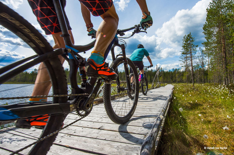 Die direkte Umgebung von Iso Syöte ist ein Paradies für Mountainbiker. Von einfachen, schnellen Singletrails bis hin zu anspruchsvolleren Strecken ist für jeden etwas passendes dabei! Sie bestimmen den Schwierigkeitsgrad und die Distanz. Es gibt mehrere offene Wildnishütten, bei denen Sie Pause machen und die Landschaft genießen können. Die Mountainbikes leihen Sie vor Ort.