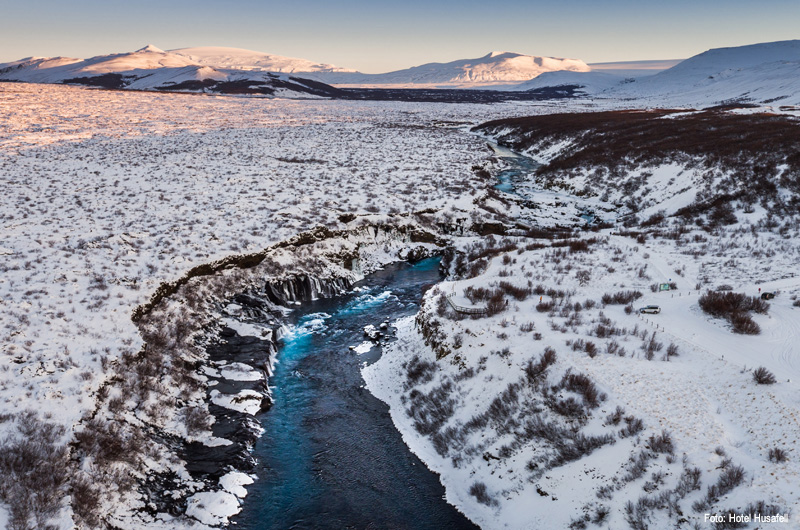 Das Gebiet rund um das Hotel ist ein besonders schönes Wandergebiet mit vielen ausgeschriebenen Wanderwegen. Im Hotel erhalten Sie Kartenmaterial zum Erkunden der Umgebung. Mit der richtigen Kleidung macht sogar eine Wanderung bei Wind und Wetter Spaß. Ganz in der Nähe besuchen Sie mit dem Mietwagen die berühmten Hraunfossar Wasserfälle oder den Pilgerort Reykholt.