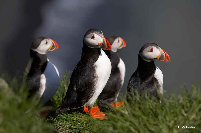 Westfjorde REGION - Highlights abseits Islands üblicher Touristenrouten Die Westfjorde liegen sehr abgeschieden und sind größtenteils unbewohnt. Daher zählen sie zu den am schlechtesten zu erreichenden Gebieten in Island. Die Westfjorde liegen abseits der üblichen Touristenrouten und außerhalb der aktiven Vulkanzone. Diese Region gehört zu den ältesten Landmassen Islands. Die Basaltschichten sind mehr als 15 Millionen Jahre alt. Heutzutage ragen aus den tiefen Fjorden steile Klippen und Hochplateaus hervor. Die Fjorde wurden durch die Gletscher der letzten Eiszeit geformt. Die Westfjorde sind eine beliebte Region für Wanderer. Es gibt einige gekennzeichnete Wanderwege durch die wunderschöne Natur. Steile Klippen, wunderschöne Strände, die tiefblauen Fjorde und die schroffen Berge machen die Westfjorde aber auch zu einer wunderschönen Landschaft. Einer dieser wunderschönen Sandstrände ist der Pretreksfjördur. Doch nicht nur die wunderschöne Landschaft lockt Reisende in diese Region. Auch die belebte Tierwelt, allen voran die Vogelwelt, ziehen immer mehr Touristen in die Abgeschiedenheit der Westfjorde. Hier liegen drei der größten Vogelklippen Europas, allen voran der Latrabjarg. Bei Latrabjarg leben tausende von Seevögeln, unter Ihnen auch der berühmte Papageientaucher.