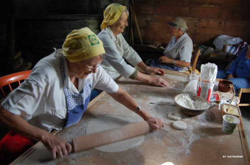Vom Hof aus hat man einen tollen Blick über den Hardangerfjord und seine Obstbäume. In der Backstube des Freilichtmuseums treffen Sie Bäckerinnen, die die traditionellen "Krotakaker" (eine Art dünn gerolltes Fladenbrot das man verschieden füllen kann) nach altem Rezept backen und braten. Manchmal dürfen dann auch Kinder mit anfassen und beim Teig kneten helfen. Geschmacksproben und Verkauf, dazu Einblicke in andere traditionelle Handwerkstechniken sind möglich. Im Volkskundemuseum findet man Ausstellungen zur Hardanger Kultur und Geschichte, sowie wechselnde Kunstausstellungen.